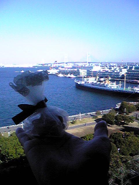ベイブリッジ、氷川丸、山下公園をバックにプチギフトをパチリ!