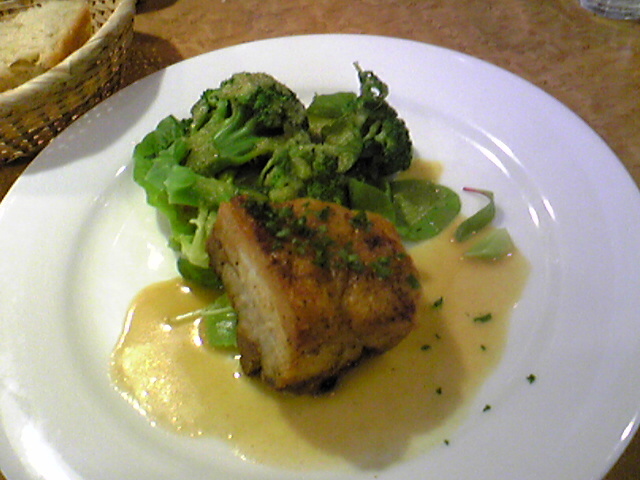 私はパンにブロッコリーのサラダ、豚バラのこんがり焼き、グレープフルーツジュースをチョイス