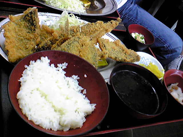 メニューの名前は忘れちゃったんですが、3種類の魚のフライの定食。