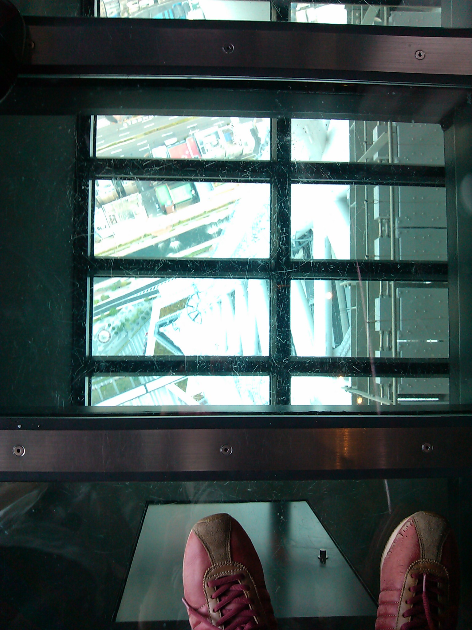 こちらはスカイツリーのガラス床から見た地上。