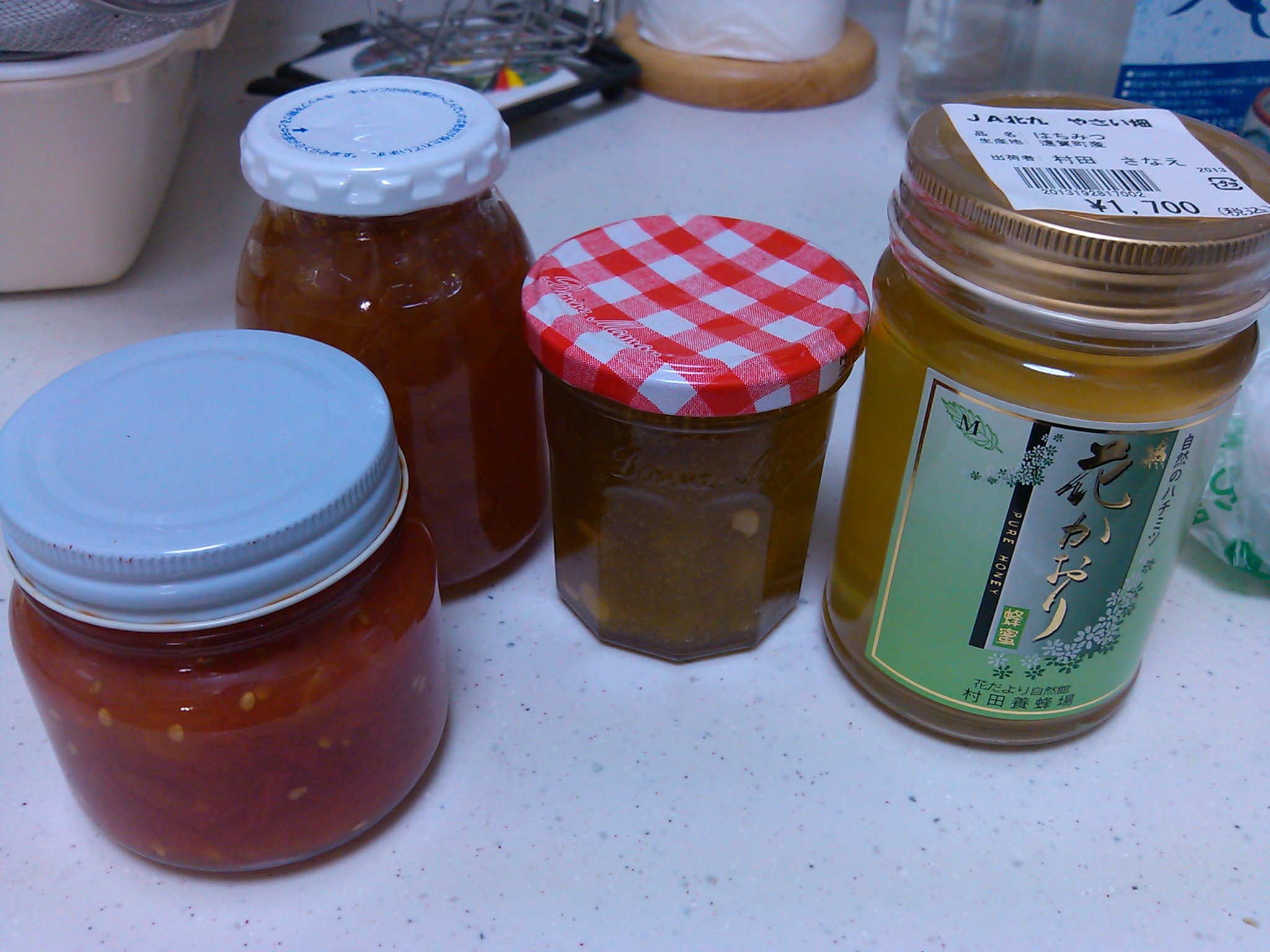 お菓子、お米、缶詰などなどと一緒に、母手作りのジャム3種類