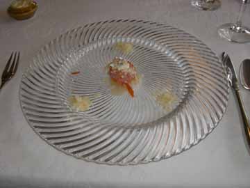 下右:足あか海老のラビオリ ラディッシュとカリフラワーのソース