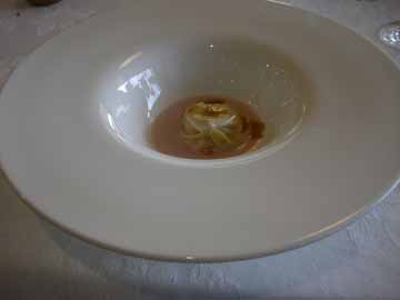 ごぼうのクレームブリュレ あなごのソテーのせ