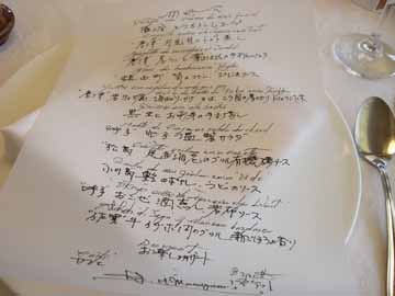 ナプキンリングにシェフが手書きしたメニューが。見てるだけでワクワクします