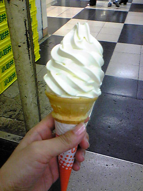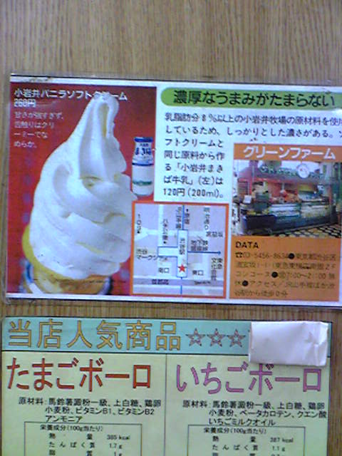 渋谷にお買い物に行った帰りに、渋谷駅にあったミルクスタンド(?)”グリーンファーム”で、ソフトクリーム発見!
