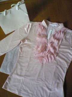 ピンクのフリルがかわいいけど、大人っぽさもあって、ジャケットの下に着るのもよさそう