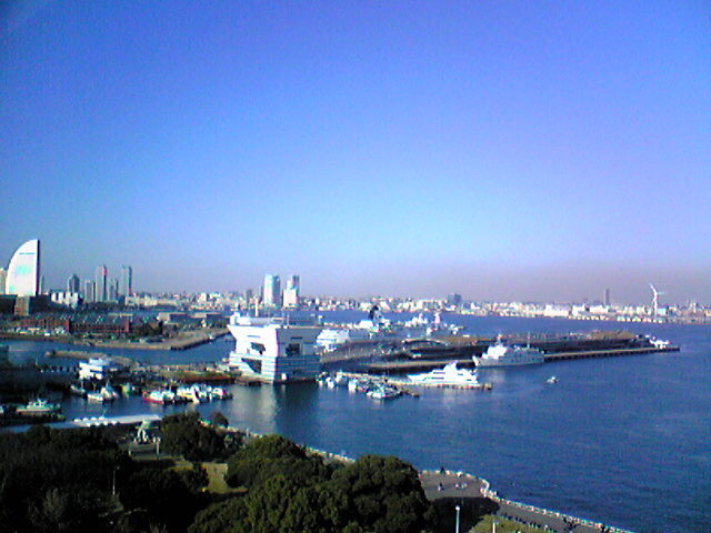 実際にはもっと広がりがあるんですけど、まぁこんな感じで、横浜ベイブリッジ、氷川丸、大桟橋、赤レンガ倉庫、みなとみらいが一望出来ます。
