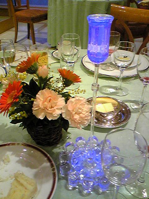 再入場は、各テーブル代表の方を1人ずつ決めて、新郎新婦さんがメインのルミファンタジアに明かりを点すのと同時に各テーブルのルミファンタジアにはテーブル代表の方が明かりを点すという演出をしました。