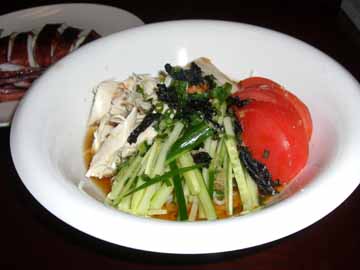 そのままお酒のお供にいただいたりもしているのですが、冷麦の上に乗せてみました