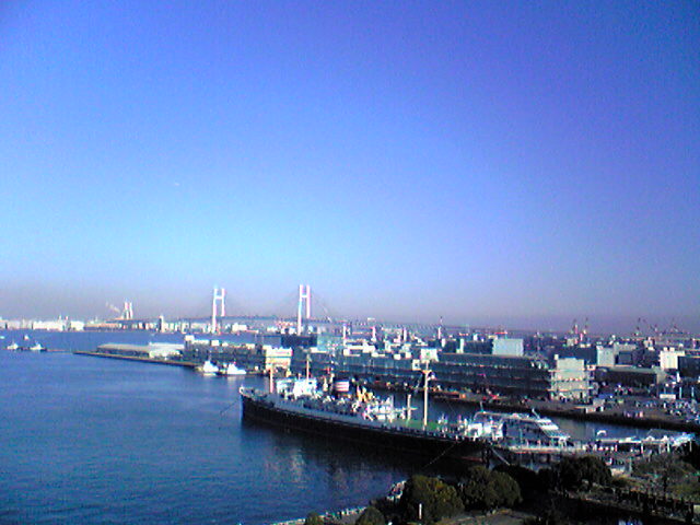 実際にはもっと広がりがあるんですけど、まぁこんな感じで、横浜ベイブリッジ、氷川丸、大桟橋、赤レンガ倉庫、みなとみらいが一望出来ます。