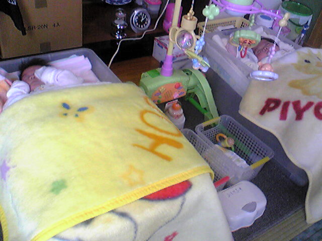 まだ2ヶ月の赤ちゃん達はすやすやとベビーベッドの中で・・・